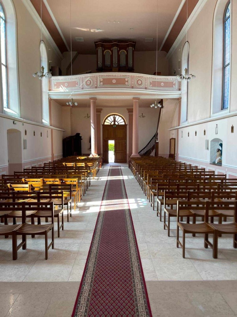 Mise en chantier en 1837, la nouvelle église fut achevée en 1839. Restait à la meubler : les bancs et les boiseries furent refaits ; après la commande de trois autels, d’une chaire et de fonts baptismaux, un orgue entièrement neuf fut commandé à Valentin Rinkenbach pour la somme de 3900 francs en 1842.